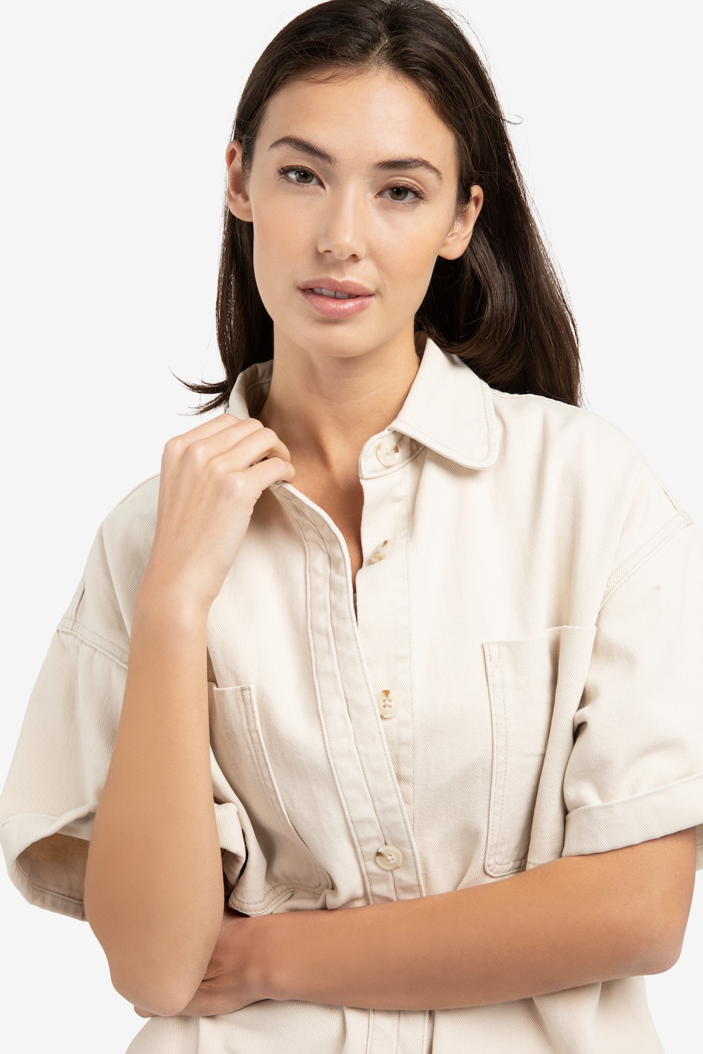 Denimjacke mit kurzen Ärmeln und aufgesetzten Taschen von Yaya